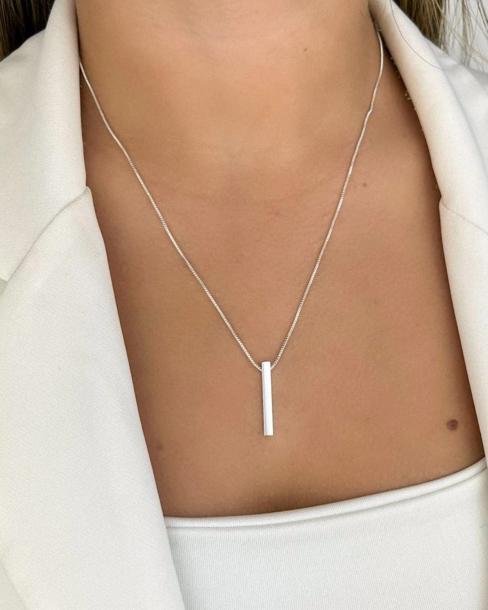 • Colar Cecília com pingente barra que adiciona um toque clean e sofisticado