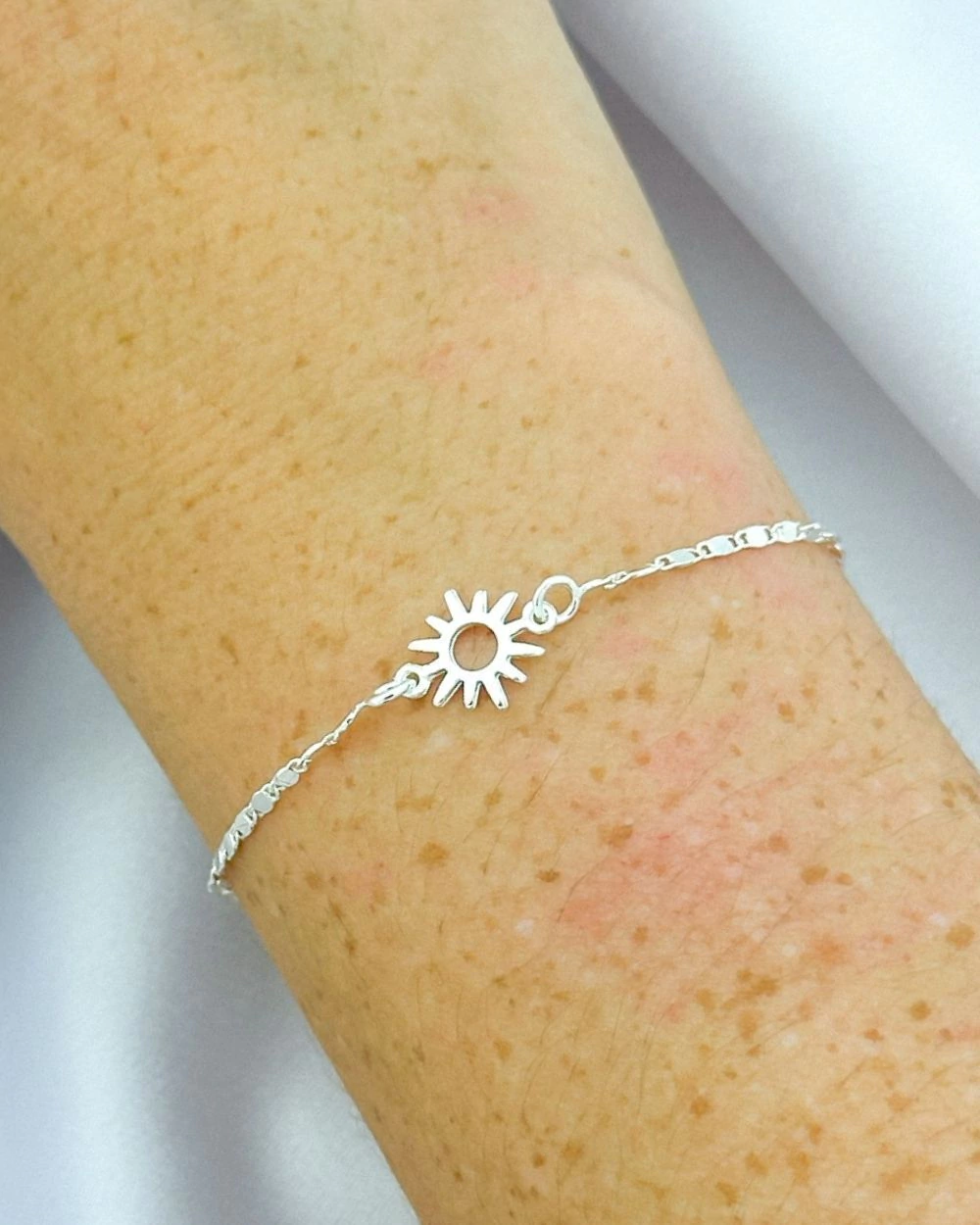 A Pulseira Sol é uma joia delicada e cheia de significado, perfeita para iluminar qualquer composição. Seu pingente em formato de sol traz um toque de brilho suave e moderno, representando luz, energia e renovação. A corrente fina garante leveza e elegância, tornando a peça ideal para o uso diário ou para ser combinada com outras pulseiras em um mix sofisticado. Um acessório versátil que adiciona charme e luminosidade ao seu estilo.