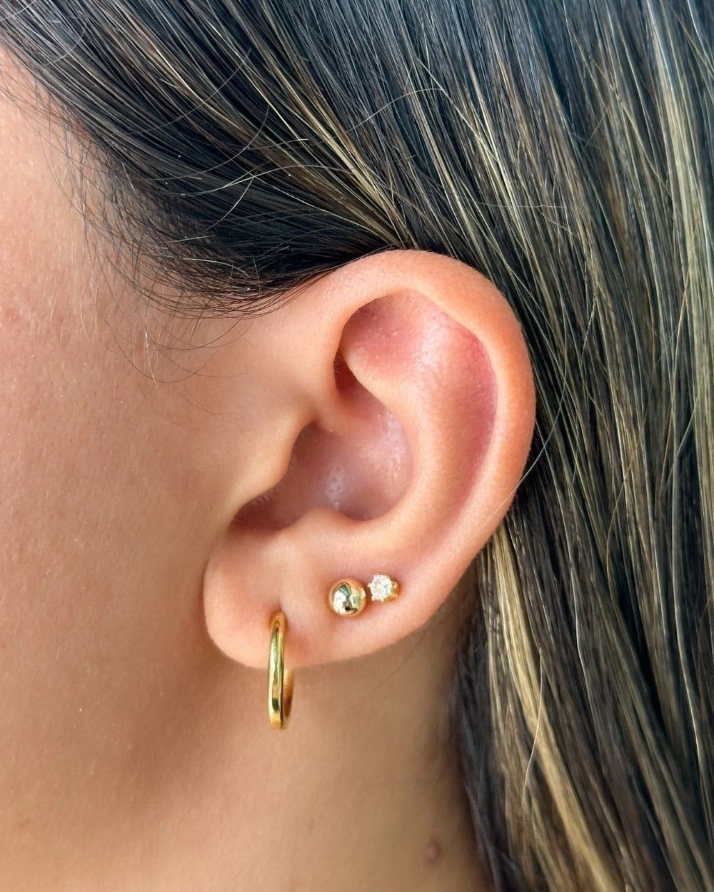 • Brinco Argolinha Lisa: traz um brilho suave e atemporal, ideal para o dia a dia e para combinar com qualquer mix.